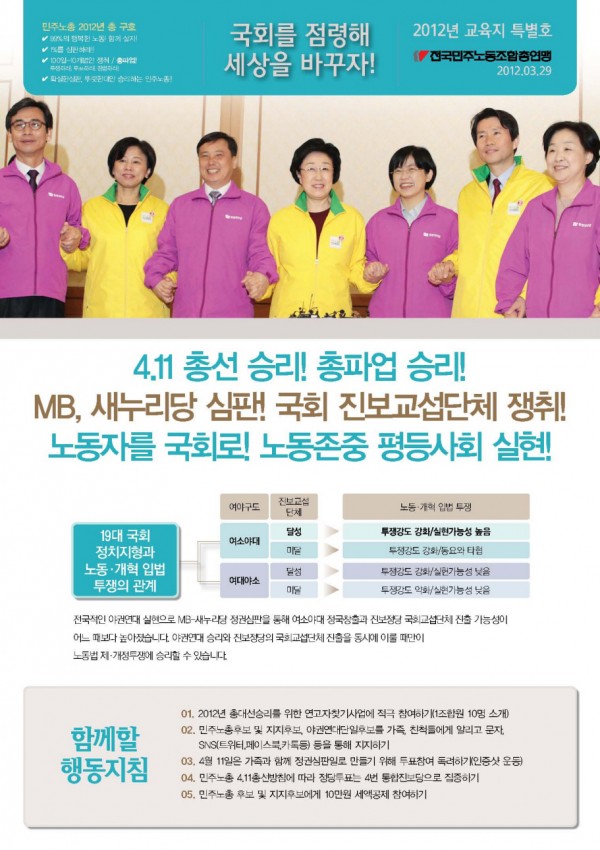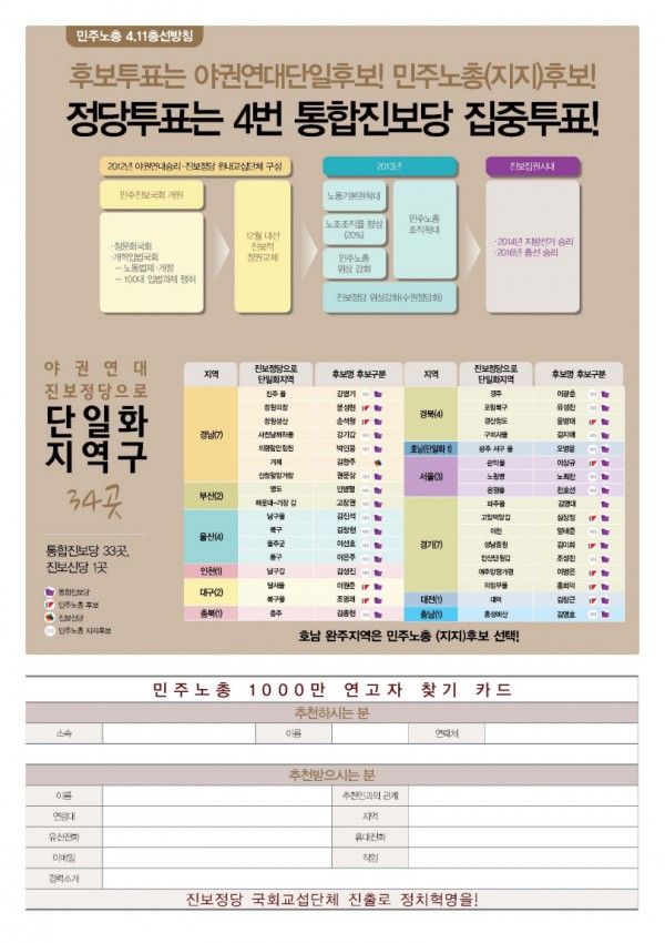 4.11 총선승리 민주노총 지침 작성자 정보 조직실장 작성 작성일 2012.03.30 15:27 컨텐츠 정보 8,398 조회 목록 본문 관련자료 이전 4.11 총선의 의미와 비전 (전국건설기업노련 홍순관 위원장) 작성일 2012.04.04 17:11 다음 벽산건설노조 투쟁에 연대합시다. 작성일 2012.03.29 17:34 댓글 0 등록된 댓글이 없습니다. Select File Upload File 목록
