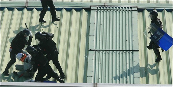 경찰은 조립3/4팀과 도장1공장 옥상을 침탈해 파업현장을 사수하던 조합원들을 폭력연행했다. 오후 1시 현재 총 16명이 연행돼 안성경찰서로 11명, 평택경찰서로 5명이 각각 압송됐다.