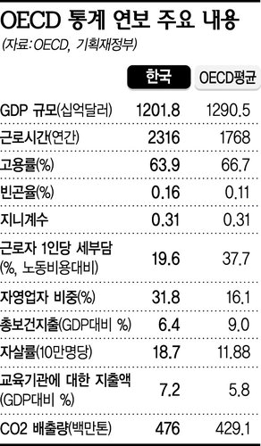 여성의 자살률은 OECD 평균보다 2배 이상 높고, 민간부문의 교육기관에 대한 지출도 OECD 평균의 3.6배에 달했다. 빈곤율도 OECD 평균보다 높은 것으로 조사됐다.